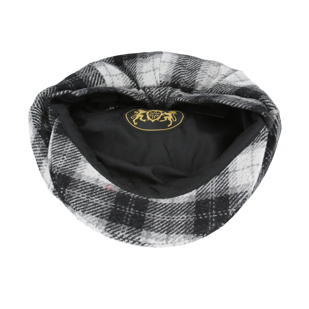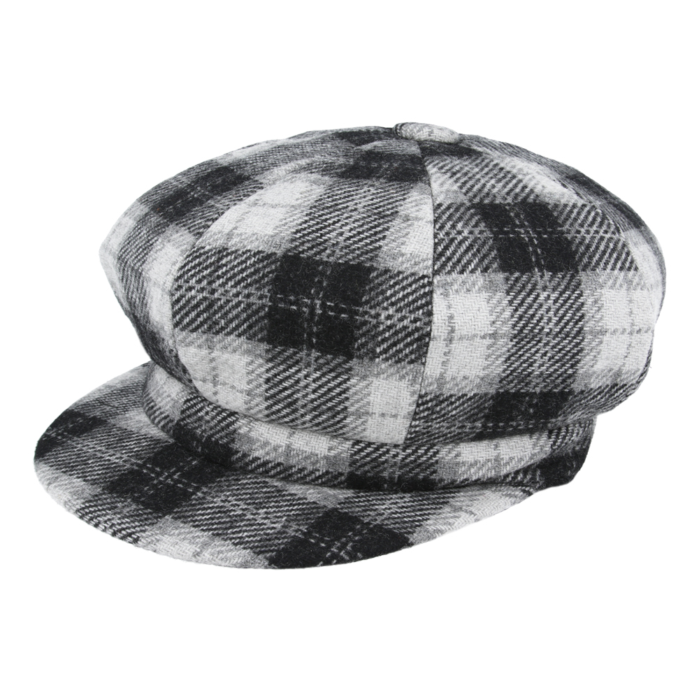 Women’s Tartan Checked Baker boy Eight Panel Cap – Black/White